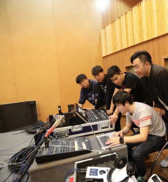 台前的完美展现离不开幕后的付出。从歌手的选拔,到编曲,再到MIDI制作,再到乐队节奏的配合,以及节目排练时录音系团学成员们的保驾护航,所有的幕后工作人员都在为晚会的顺利举行努力着。