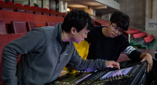 颜开老师作为此次的PG之一,为此次的音乐会助力,认真的在舞台旁操作台进行幕后工作,马田田老师以及刘闰心老师负责统筹,幕后的后勤安排,包括现场的清场、门票、所有的人员安排皆由他们负责。