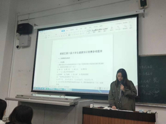 2019年11月17日,在我系辅导员罗津老师的带领下,以年级为单位,分别进行了“郫都区第六届大学生健康知识竞赛”的学习。