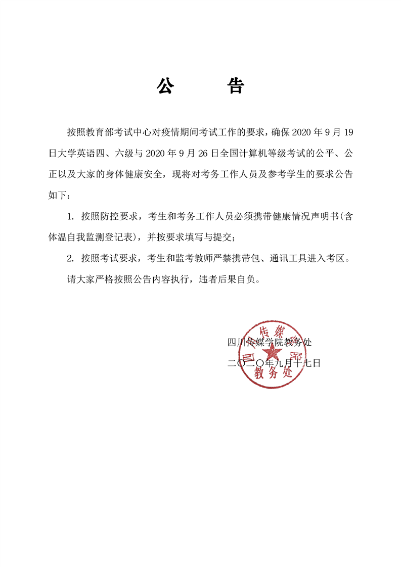 2020年9月大学英语四六级与全国计算机等级考试公告