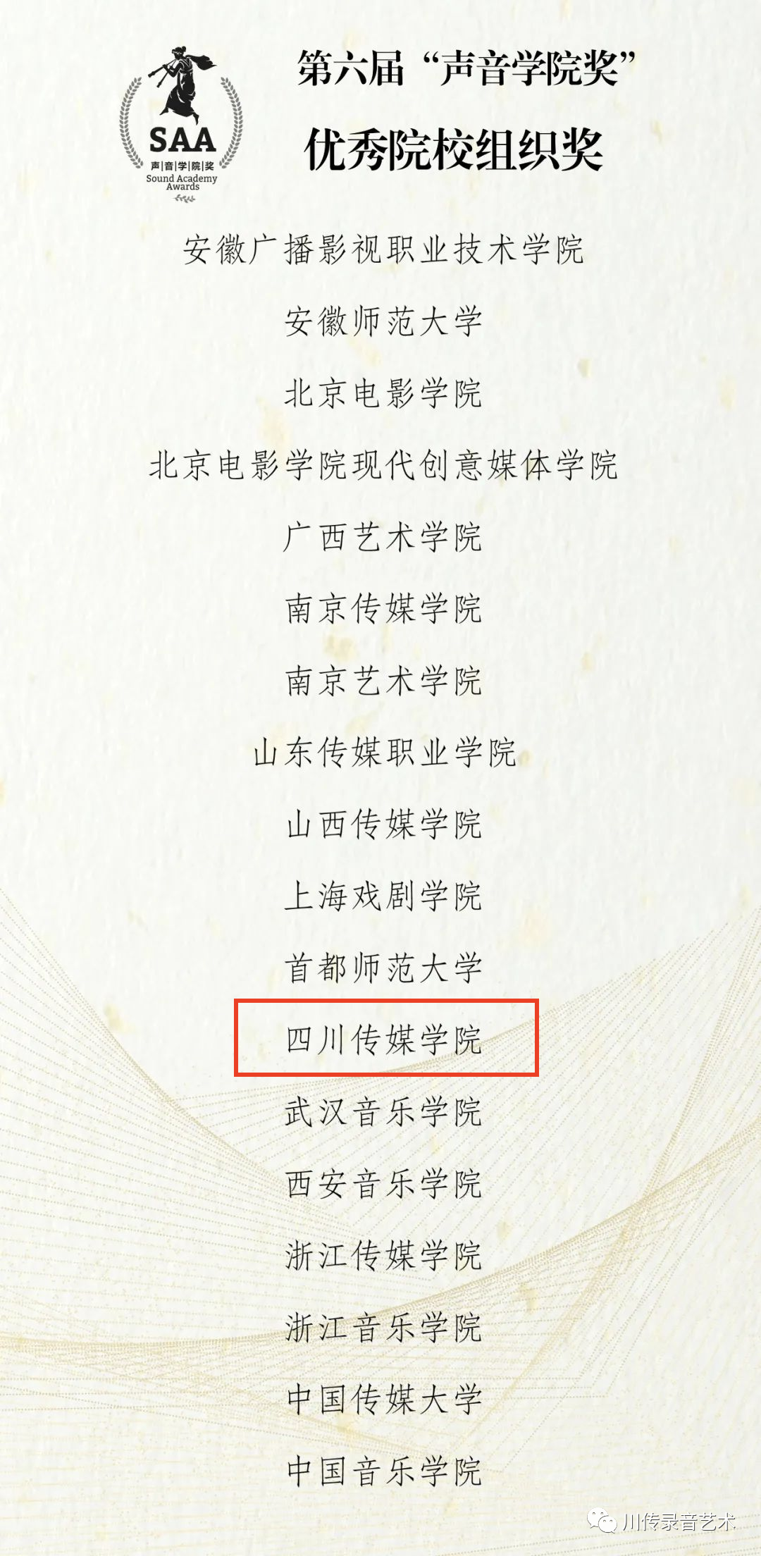 喜报|录音艺术系师生荣获国家一级学会奖——中国电影电视技术学会第六届“声音学院奖”奖项