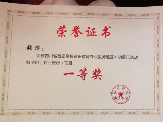 4月12日—16日,在四川省教育厅主办的“四川省首届高校音乐教育专业教师基本功展示”活动中,综艺学院音乐系三名老师参加了此次比赛,并获得优异成绩。