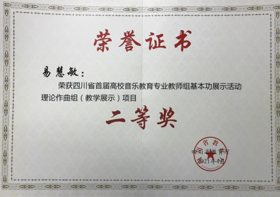易慧敏老师获得理论作曲组教学展示二等奖。