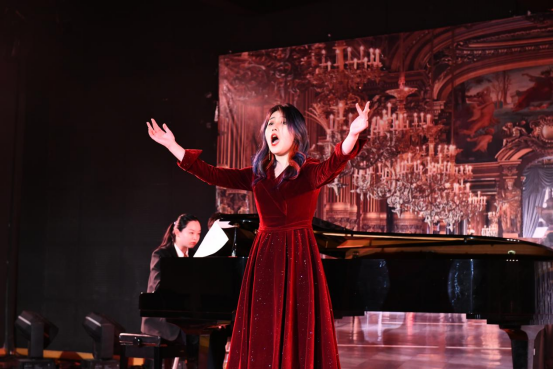音乐会选曲丰富多样,中国古典歌曲、意大利歌剧、民族歌曲轮番演绎,给观众们带来了一场视听盛宴。声乐随想曲《春江花月夜》是根据同名民族乐曲改编而来,是一首独特的中国艺术歌曲,王若迪同学用歌声表达了蕴含在其中的传统民族音乐的经典美。在《吻》这首歌曲中,孔美懿同学用活泼且明亮的歌声表达女主人公对爱的渴望;杜景春同学演唱的《多么可怕的时刻》用克制而富有激情的歌声及真挚的情感打动了观众。抒情小调《知道不知道》根据陕北地区的信天游改编而成,罗昱涵和徐倩同学轻松有趣地表现了歌曲中纯真的爱情。最后,全体演唱者用一曲饱含深情的《我和我的祖国》结束了整场演出。