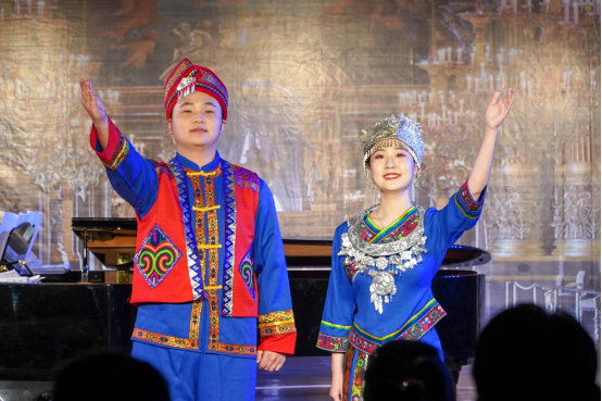 本场音乐会选曲丰富,给了听众们多样的审美体验。唐欣玥同学演唱的《等上一辈子》讲述了沂蒙山抗日根据地军民同甘共苦、生死相依的动人故事,彰显了军民水乳交融、生死与共的沂蒙精神;钟少虹和薛凯元同学用一首哈萨克族民歌《可爱的⼀朵玫瑰花》展现了浓浓的民族风情;施振宇同学演唱的《桥》让听众们仿佛置身于小桥流水的江南;何睿琪同学则在《我心爱的意中人》中为大家讲述了一段充满诗意的爱情故事。