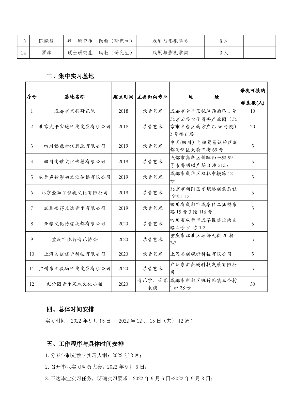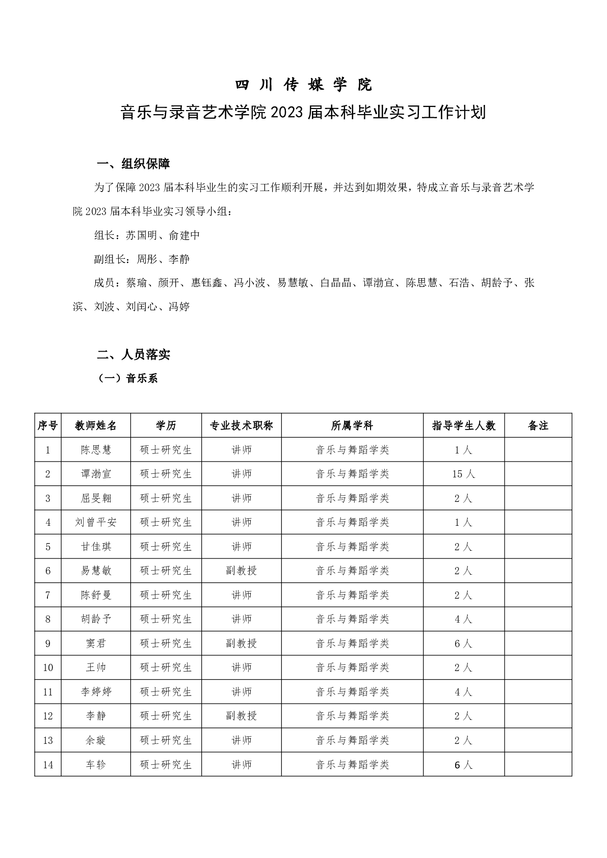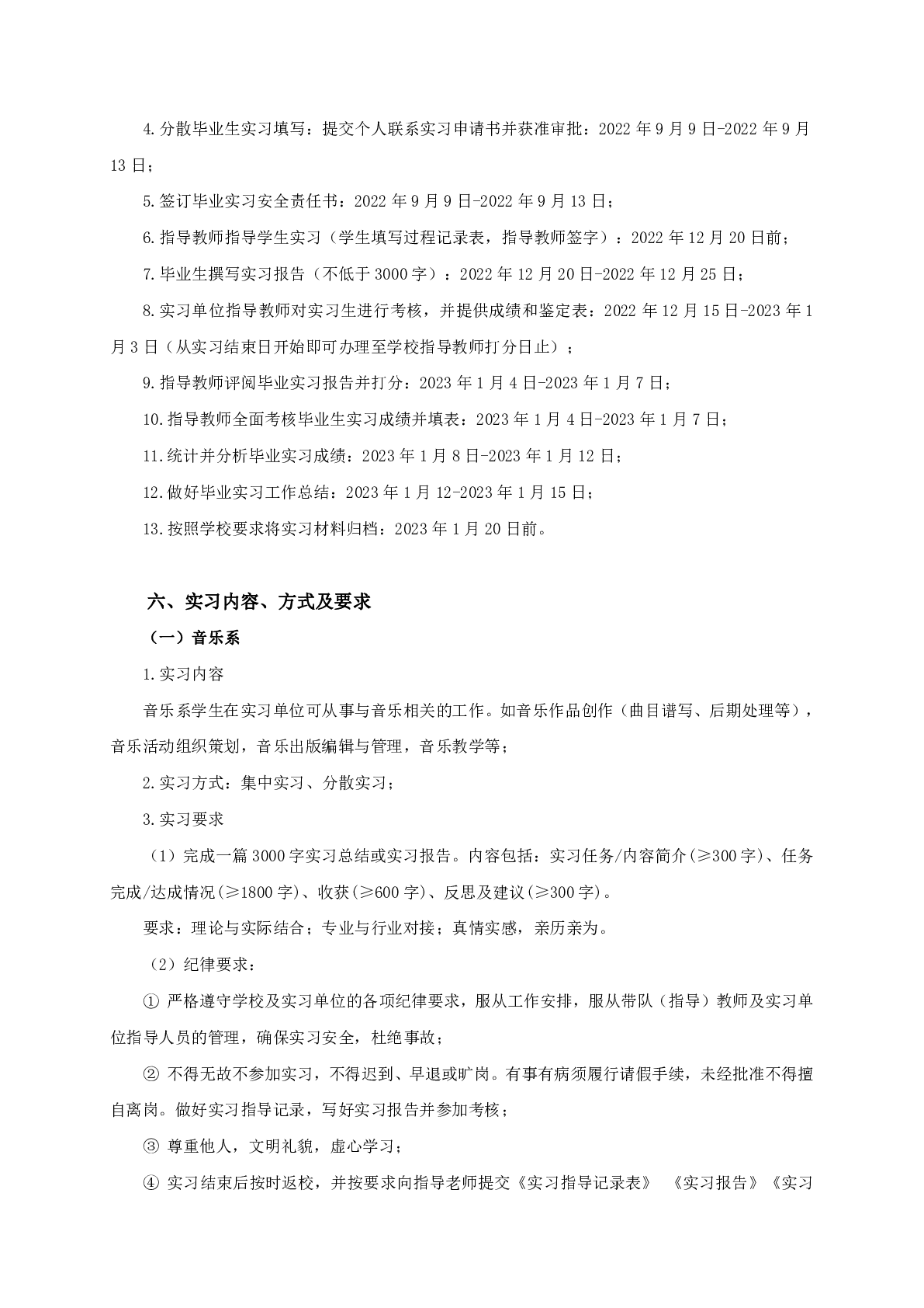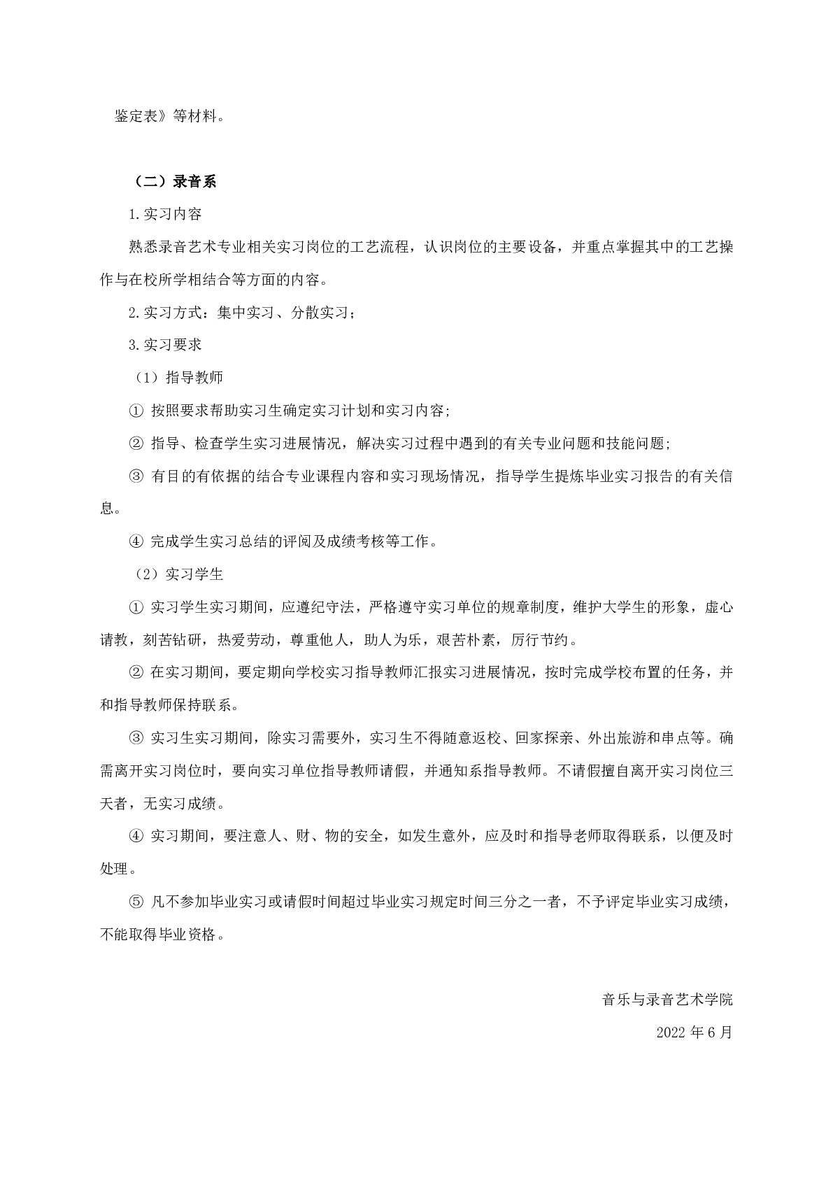 关于音乐与录音艺术学院2023届本科毕业实习工作计划的通知
