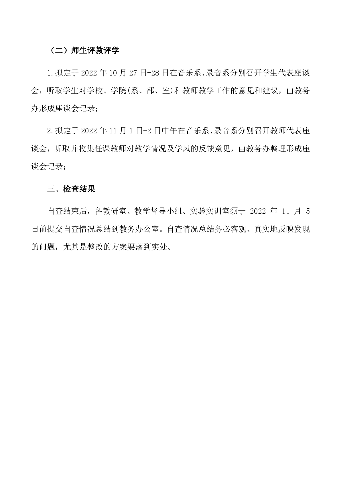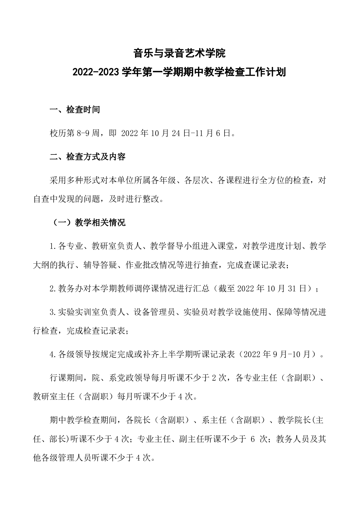 关于音录学院 22-23-1期中教学检查工作计划