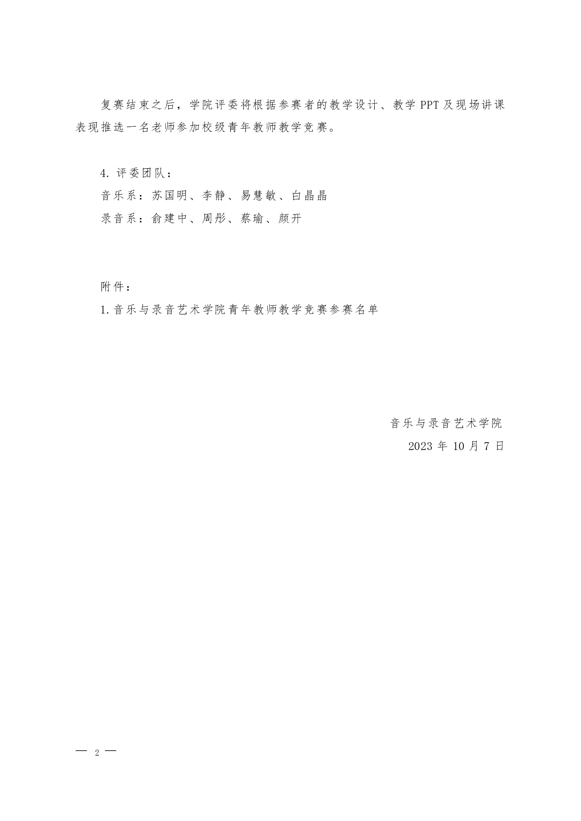 音乐与录音艺术学院关于举办2023年青年教师教学竞赛的通知