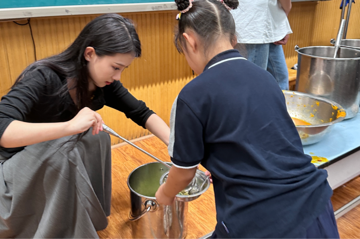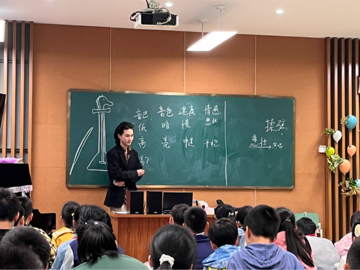 经历两周系统的听课学习后,实习老师们正式进入了教学实践阶段。当我们忐忑地坐在钢琴前,学着指导老师的样子弹出“do mi sol mi do”的音符时,无需语言交流,学生们立刻乖乖坐直,当琴键间流淌出动听的旋律,学生们又迅速地起立,以整齐的歌声向老师致以问候。我轻轻闭上双眼,聆听那如晨间清风般纯净的歌声,内心深受触动。音乐,以其潜移默化的力量,无声地传递着情感与智慧,其影响力远远超过了简单的言语交流。