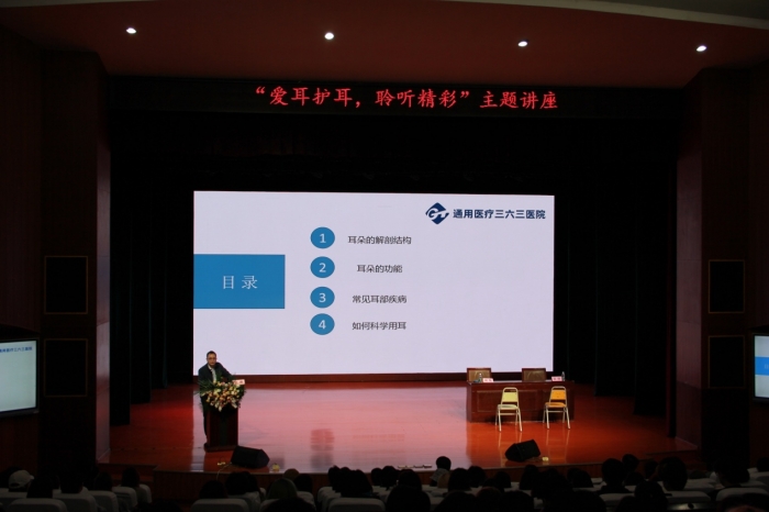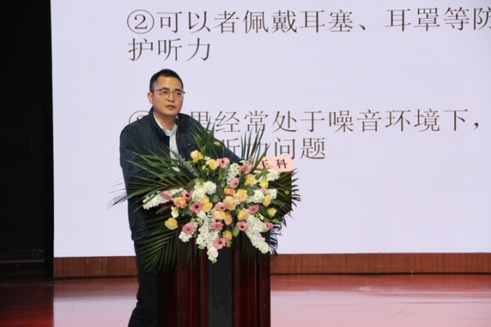 随后,来自通用医疗三六三医院的专家,耳鼻咽喉头颈外科副主任医师王科,为现场的师生做了精彩的宣讲。宣讲内容围绕耳朵的功能、常见耳部疾病、如何科学用耳、听力的保护等话题。让现场长期在学习工作中用耳频次较重的师生从中收获了不少相关于爱耳护耳的常识与建议。
