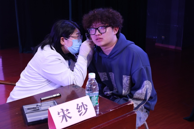 紧接邀请通用医疗三六三医院刘俊、宋纱两位医师的上场,本次活动进入最后一个重要环节——现场耳部健康检查及听觉能力评估。现场师生态度积极,踊跃参与,秩序井然的排队完成了各自的检查。据现场统计,一共有150人参与了此项环节,且经由专家初步评估发现,有几位学生的耳朵健康存在一定的隐患,并逐一细心的做出了相应的建议和正确的引导。