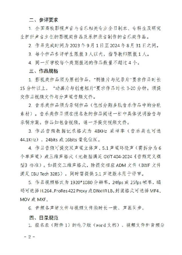 2. 提供参赛作品完整音频文件(无需提供分声道文件)、视频文件(影视组)
