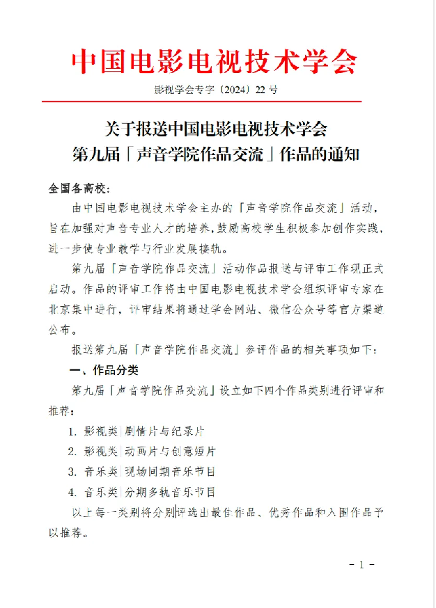 鉴于本赛事的作品上报数量限制,录音艺术专业将于2024年9月28日开展内部作品遴选活动,确定四个类别最终报送作品。