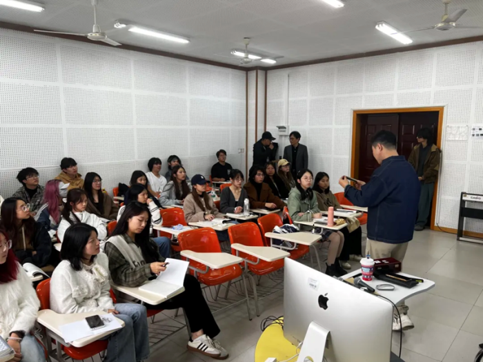 下午,王老师参与了学院的两场特别活动。基于我院录音艺术专业大三学生的影视环绕声制作课程,王老师和他的两位研究生带来了生动的动画短片分享。