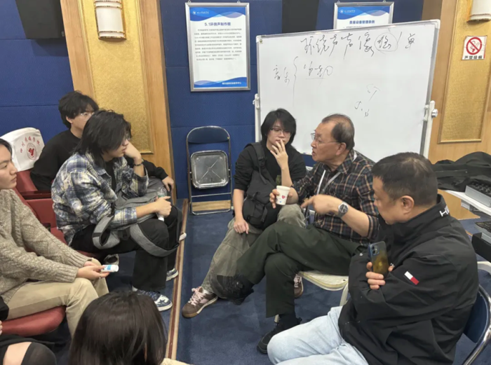 随后王老师又向学生们分享了自己四十余年的创作心得。王老师强调,优秀的录音不仅仅是技术的堆砌,更是情感与故事的传递,每一个音符、每一声呼吸都应服务于影片的整体氛围和叙事需求,并勉励大家要持续探索、勇于创新,用声音讲述更加动人的故事。