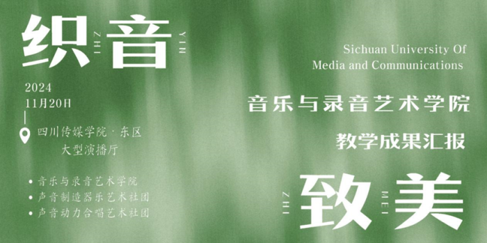 为全面展示教学成果,音乐与录音艺术学院决定于2024年11月20日在四川传媒学院东区大型演播厅,举办一场别开生面的教学成果汇报演出。本次演出致力于融合美育与劳育的精髓,旨在检验学生的学习成果,提升学生专业技能,同时激发学生的创新精神、团队协作能力和对美的感知与创造能力。学生们亲身投入,从策划至执行的每一步,都倾注心血,通过亲身实践来绽放自己的才情与创意,让观众沉浸于音乐与录音艺术的美妙旋律中,深切体会到音乐带来的的震撼与力量。